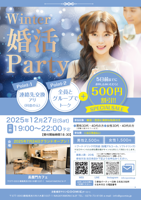 冬の夜に、みんなで楽しく出会える 「Winter 婚活 Party」 を開催します!